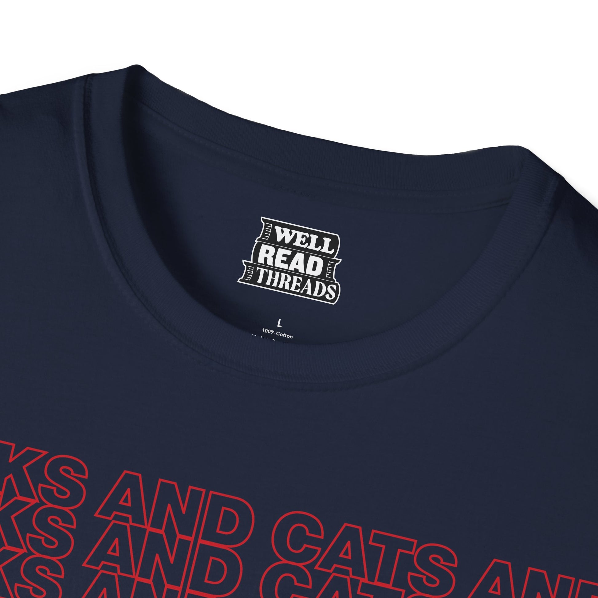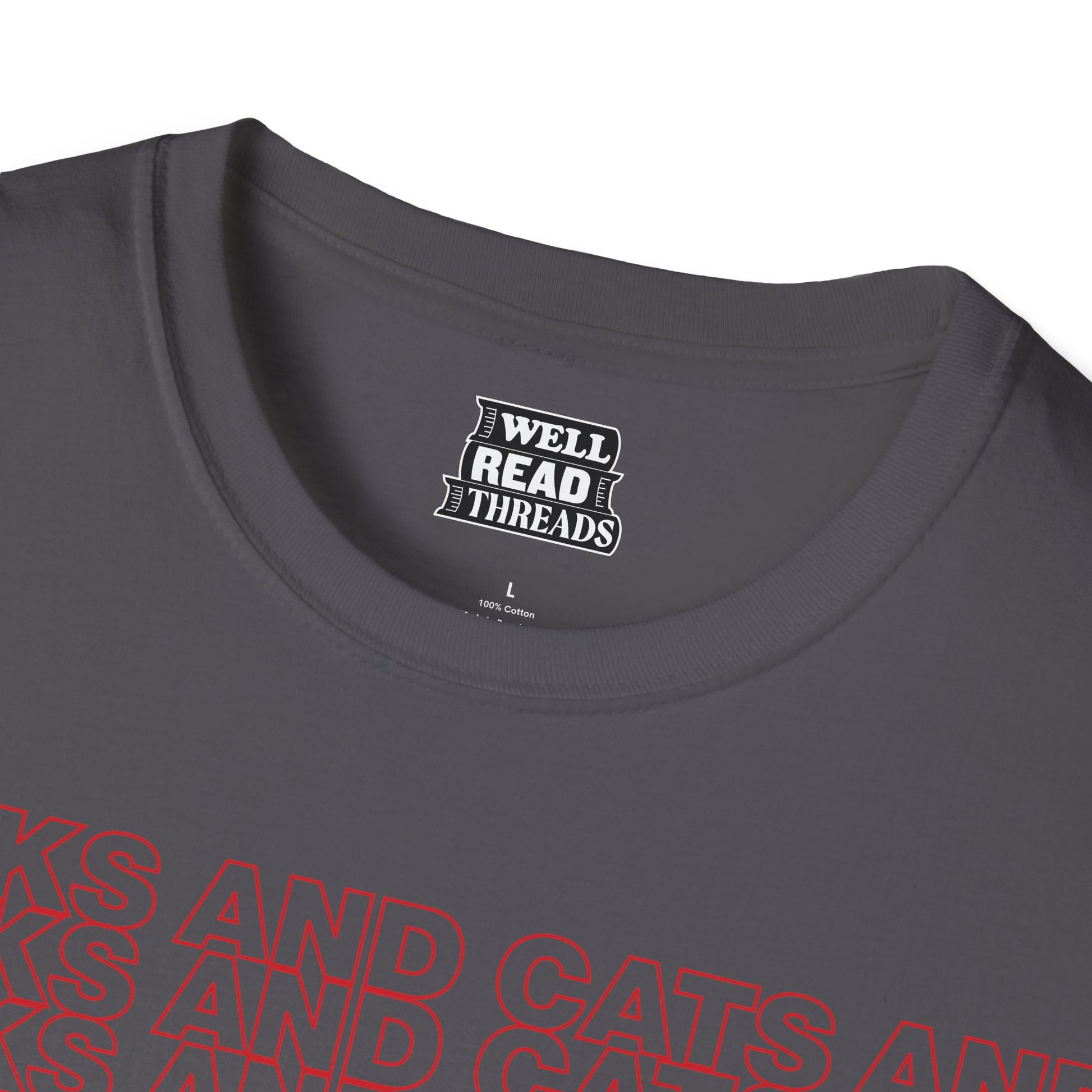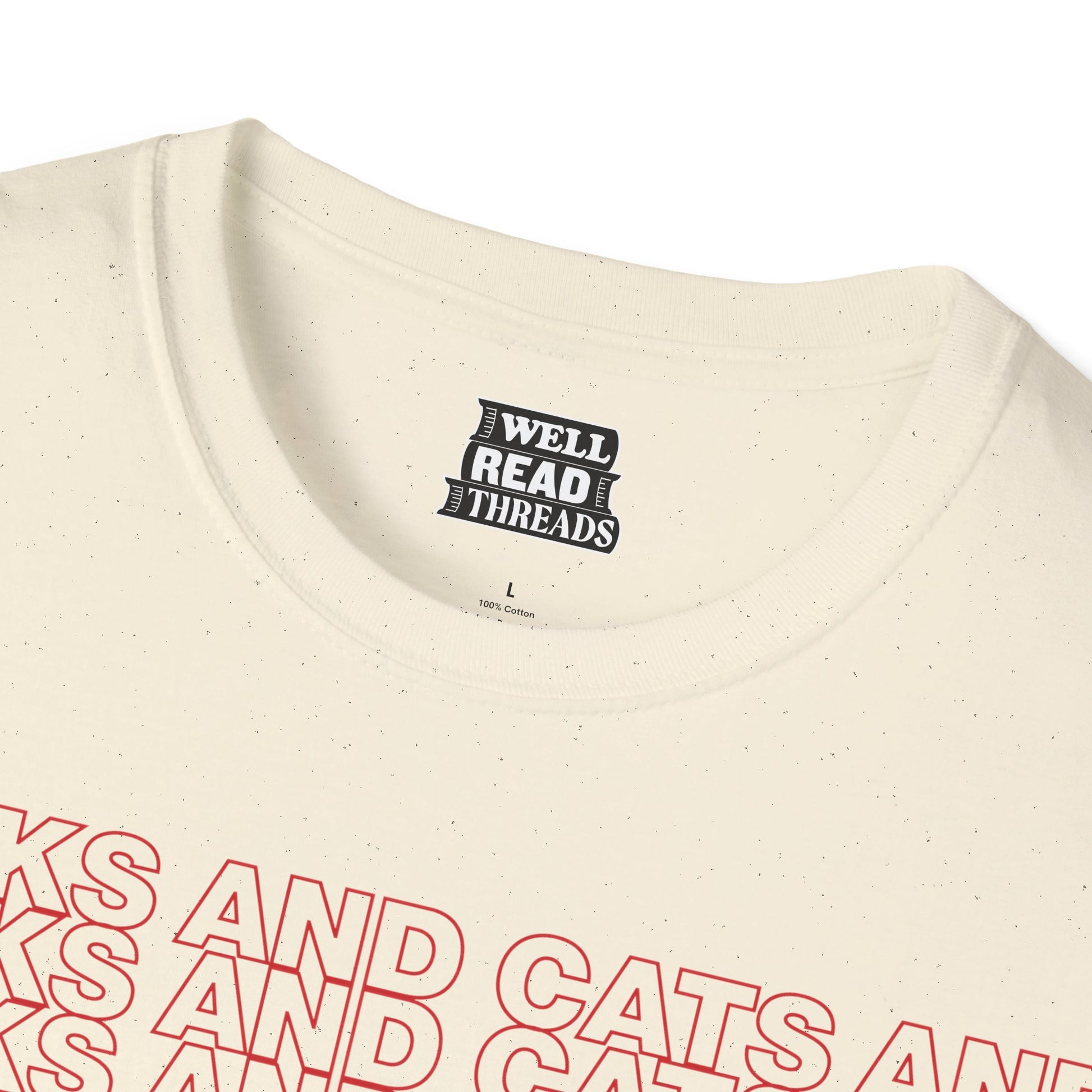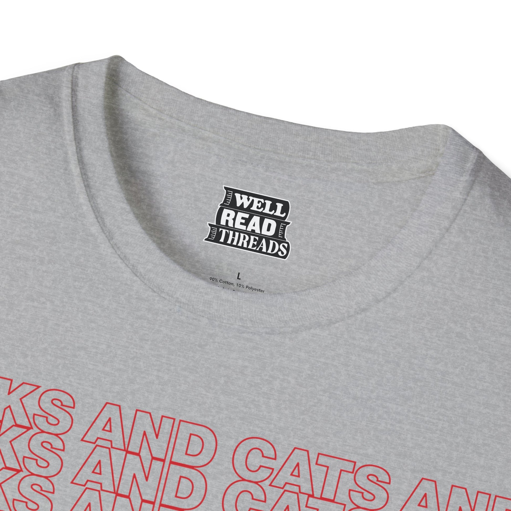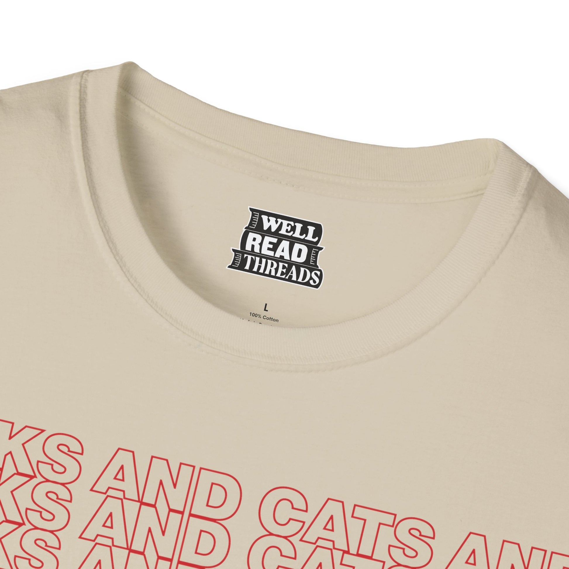 A high-quality T-shirt for those who like books and cats and beatboxing and thank you bags